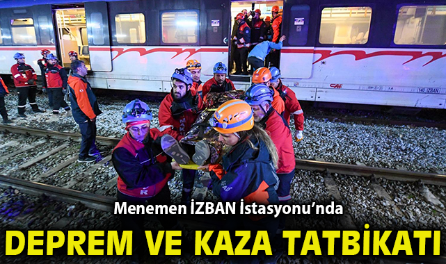 Deprem senaryosu başarıyla uygulandıSenaryo kapsamında, Çiğli’den hareket eden bir yolcu treni Menemen İZBAN İstasyonu’na giriş yaptığı sırada deprem meydana geldi. Şiddetli sarsıntı nedeniyle trenin son vagonu raydan çıkarak devrildi. Trende 40 yolcu bulunduğu ve 7’sinin yaralandığı bilgisi makinist tarafından operasyon kontrol merkezine bildirildi. Durum vakit kaybetmeden 112 Acil Çağrı Merkezi’ne iletilirken, ihbar üzerine bölgeye itfaiye, sağlık ve arama kurtarma ekipleri sevk edildi. Ekipler olay yerine ulaşana kadar tren personeli tarafından yaralı yolculara ilk yardım uygulamaları yapıldı. Ardından tahliye çalışmalarının güvenli bir şekilde yürütülmesi için öncelikle demiryolu hattının elektrik enerjisi kesildi ve olay yeri emniyete alındı. Ardından ekipler, vagon içerisinde mahsur kalan yolculara ulaşarak durum tespiti yaptı. Sağlıklı yolcular, belirlenen tahliye planı uygulanarak güvenli toplanma alanına alındı. Tekerlekli sandalyede olduğu belirlenen bir yolcu ilk kontrollerinin ardından güvenli alana sevk edilirken; durumu ağır olan iki yolcu sedye ile tahliye edildi. Yaralıların tamamı olay yerindeki ilk tıbbi müdahalelerin ardından ambulanslarla sağlık kuruluşlarına sevk edildi.