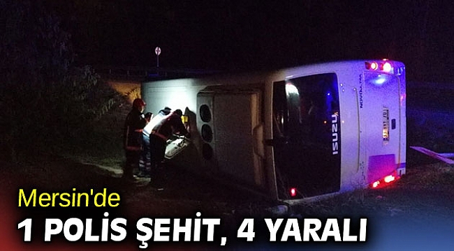 Mersin Tarsus'ta, şarampole devrilen midibüsteki bir polis şehit oldu, 4 polis de yaralandı.