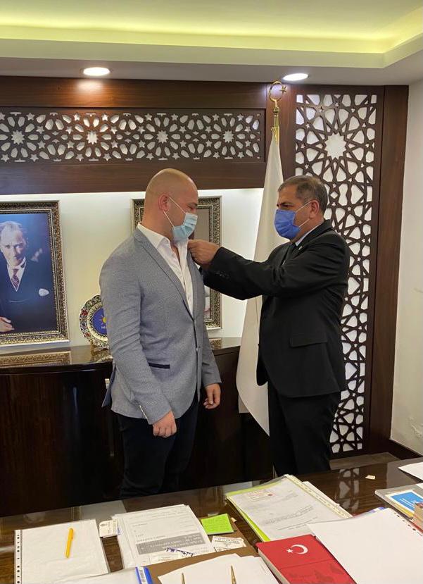 Başkanı Cengiz Ergün’ün yeğeni Haktan Keskin’e rozetini taktı.
