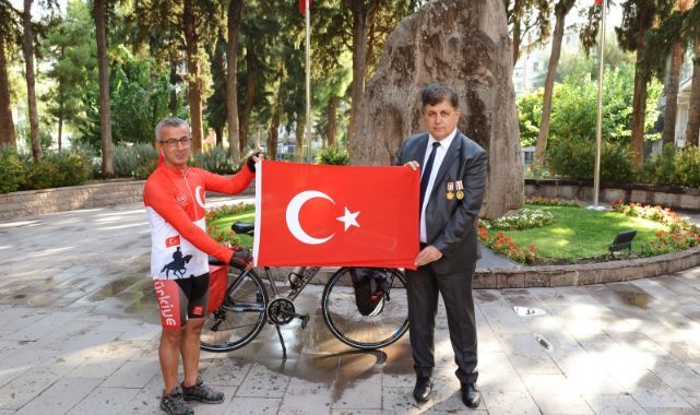 Karşıyaka Belediye Başkanı Dr. Cemil Tugay, Kurtuluş Savaşı’nın kadın kahramanlarının anısı için bisikletiyle 870 kilometrelik bir yolculuğa çıkan Orhan Kotluk’u uğurladı ve kendisine Türk Bayrağı takdim etti. İzmir'de yaşayan ve yaklaşık 17 yıldır şehitler anısına bisiklet yolculuğu yapan Kotluk, Zübeyde Hanım Anıt Mezarı’nda Başkan Tugay’dan teslim aldığı bayrağı, Kastamonu’da bulunan Şerife Bacı Anıtı’na götürecek.