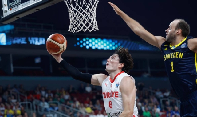 FIBA 2025 Avrupa Şampiyonası son 16 turunda A Milli Erkek Basketbol Takımı, Letonya’nın başkenti Riga’da İsveç ile karşı karşıya geldi. İlk yarıyı 42-37 geride tamamlayan milliler, müsabakayı 85-79’luk skorla kazandı ve çeyrek final biletini aldı. Karşılaşmada en skorer isim 24 sayıyla Alperen Şengün oldu.Ay-yıldızlılar, çeyrek finalde Polonya - Bosna Hersek maçının galibiyle karşılaşacak.Salon: Arena RigaHakemler: Yohan Rosso (Fransa), Ariadna Chueca (İspanya), Boris Krejic (Slovenya)Türkiye: Shane Larkin 10, Kenan Sipahi, Cedi Osman 17, Ercan Osmani 14, Alperen Şengün 24, Şehmus Hazer 11, Furkan Korkmaz 5, Adem Bona 4, Onuralp Bitim, Ömer Faruk YurtsevenBaşantrenör: Ergin Atamanİsveç: Victor Gaddefors 15, Melwin Pantzar 10, Pelle Larsson 15, Simon Birgander 14, Ludde Hakanson 16, Denzel Andersson 5, Tobias Borg, Adam Ramstedt 4, Alagie Barra NjieBaşantrenör: Mikko Riipinen1. Periyot: 20-23 (İsveç lehine)Devre: 37-42 (İsveç lehine)3. Periyot: 53-48 (Türkiye lehine)