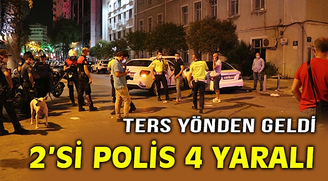 Alınan bilgiye göre, Akdeniz Caddesi üzerinde ters yönden gelen Hollanda uyruklu Mirza V.(22) yönetimindeki 07 ACC 187 plakalı otomobil, Şehit Fethi Bey Caddesi üzerinde ilerleyen motorize yunus ekibine, daha sonra park halindeki 35 ACE 212 plakalı hafif ticari araca ve 35 GA 5965 plakalı otomobile çarptı.Kazada motorda bulunan polisler Emre F.Ş. ile Süleyman D'nin yanı sıra otomobil sürücüsü Mirza V. ile beraberindeki Hasan K. (18) yaralandı.Çevredekilerin durumu ihbar etmesi üzerine olay yerine çok sayıda polis ve sağlık ekibi sevk edildi.Yaralanan polisler ambulansla Alsancak Alsancak Nevvar Salih İşgören Devlet Hastanesine, Mirza V. ile Hasan K. ise Sağlık Bilimleri Üniversitesi İzmir Tepecik Eğitim ve Araştırma Hastanesine kaldırıldı.Tedavi altına alınan yaralıların hayati tehlikelerinin bulunmadığı öğrenildi.