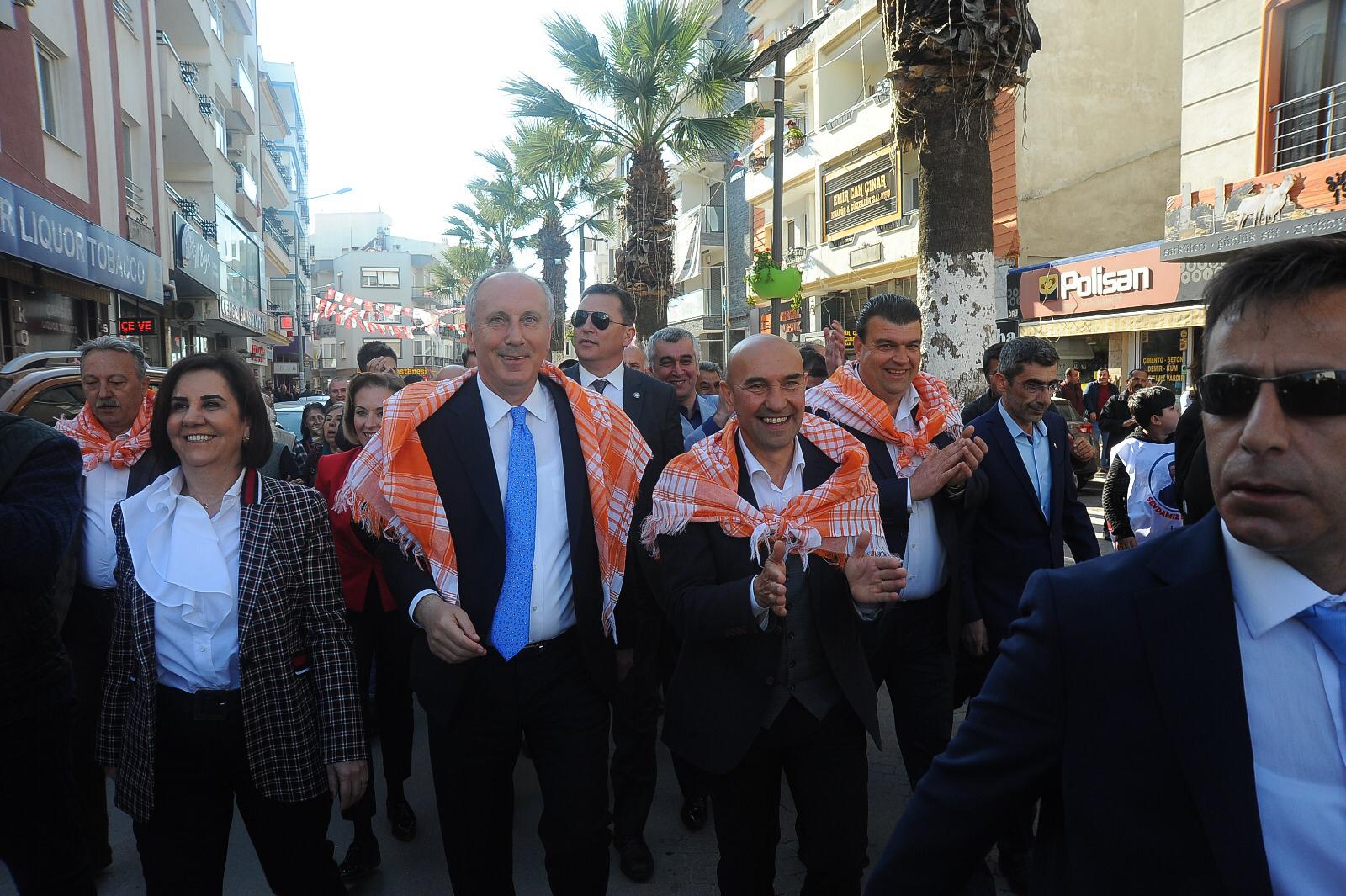 “17 sene sonra beka sorunu var dersen, o aman beka sorununu sen yaptın demektir. Memleketi 17 yılda bu noktaya getirirsen, zaten senin düzeltme şansın yok” diyen İnce, sözlerini şöyle sürdürdü: “Bu beka meselesi nedir düşündüm, şudur: Bahçeli Erdoğan Koltuk Aşkı. Türkiye ne zaman mutlu olur? Türkiye, İzmir’e benzediği zaman mutlu olacak. 24 Haziran seçimleri öncesinde, seçimden sonra ne olacağını söylemiştim. 31 Mart’tan sonra ne olacak söyleyeyim: Türkiye’de Telekom, Petkim, Tüpraş, limanlar, değerli araziler satıldı. Bir varlık fonu kurdular. İçinde Ziraat Bankası var. Ziraat’i Osmanlı kurdu. İçine PTT’yi koydular. PTT de Osmanlı’dan kalma. İçine Çaykur’u koydular, THY’yi koydular, Borsa İstanbul’u koydular. Bunların hiçbirini Erdoğan kurmadı. Bunları haraç mezat satacaklar.”