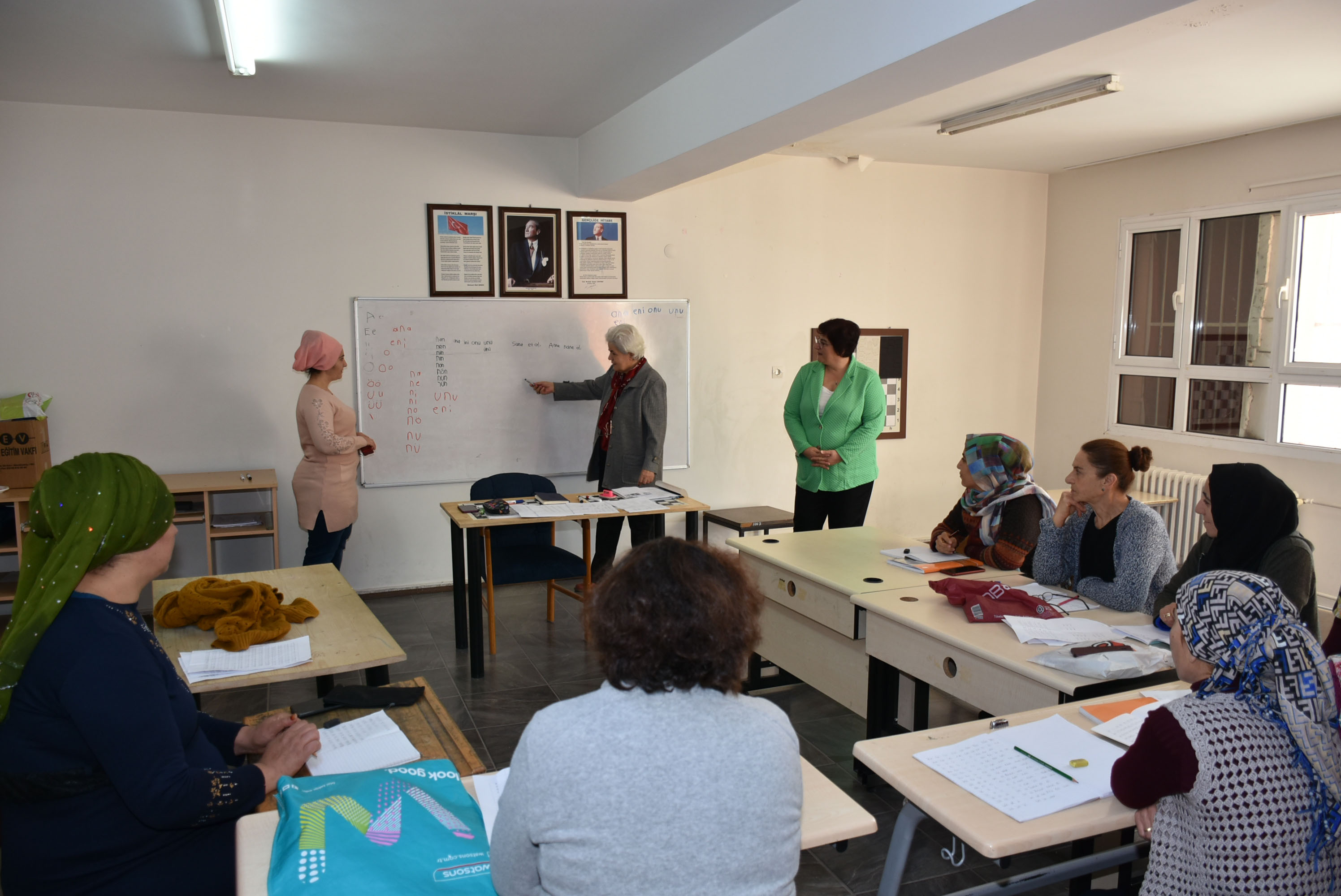 kayıt yaptırdı. Okuma yazma öğrenen kadınlar, kurs sonunda Halk Eğitim