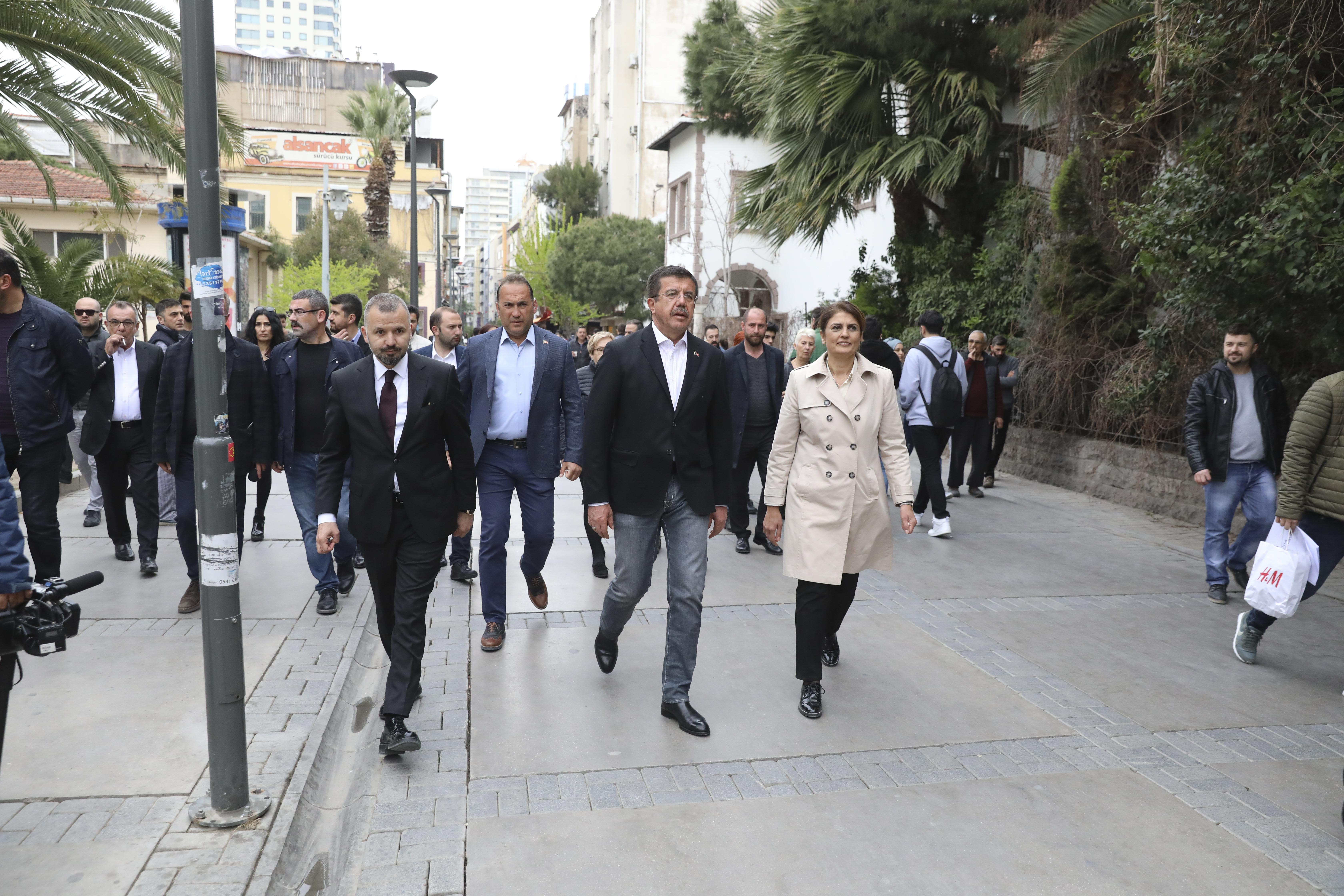 Zeybekci, tarihi çarşının Kestanepazarı, Şadırvanaltı ve Hisarönü bölümlerinde esnafı ziyaret etti, ilgiden bölgeyi 4 saatte geçebildi. Esnaf tarafından ilgiyle karşılanan Zeybekci, “Bu sene olacak inşallah, sizinle birlikteyiz”, “Hakikaten yeter İzmir’i kurtarın artık”, “İzmir’in size ihtiyacı var inşallah bu kez kazanacaksınız”, “Kaldırım taşları yapıldı, yağmurda kalkıyor yaşlı insanlar yürüyemiyor. Buraların düzelmesi gerekiyor”, “İnşallah kazanacaksınız”, “Kemeraltı, altyapı olarak, ulaşım olarak sizden büyük hizmet bekliyor. Seçim sonrası da sizi burada görmek istiyoruz”, “İzmir’e çözüm gerekiyor” diyerek destek ve beklentilerini iletti.