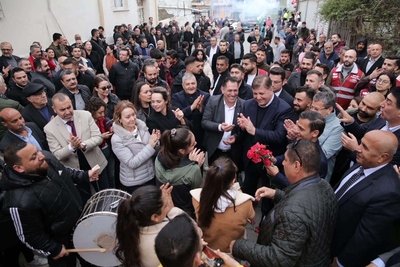 Mutlu daha sonra CHP İzmir Büyükşehir Belediye Başkan Adayı Cemil Tugay ve eşi Öznur Tugay ile birlikte Roman mahallelerini ziyaret etti. İlk olarak İsmet Paşa’ya giden ve mahalle girişinde coşkuyla karşılanan Tugay ile Mutlu’ya, Roman vatandaşlar yoğun destek verdi. Meşale ve sloganlar eşliğinde etkinlik alanına yürüyen Tugay ve Mutlu, Roman havası eşliğinde mahalle sakinleriyle oynadı. Kurulan sahnede mahallelilere seslenen Mutlu, “Hep birlikte çok güzel bir 5 yıl geçireceğiz. Cemil Başkanım ve sizlerle birlikte omuz omuza, yan yana, hiçbirinizin bir adım bile arkada olmadığı çok güzel bir dönem sizleri bekliyor. Desteğiniz için çok teşekkürler, iyi ki varsınız” ifadelerini kullandı.