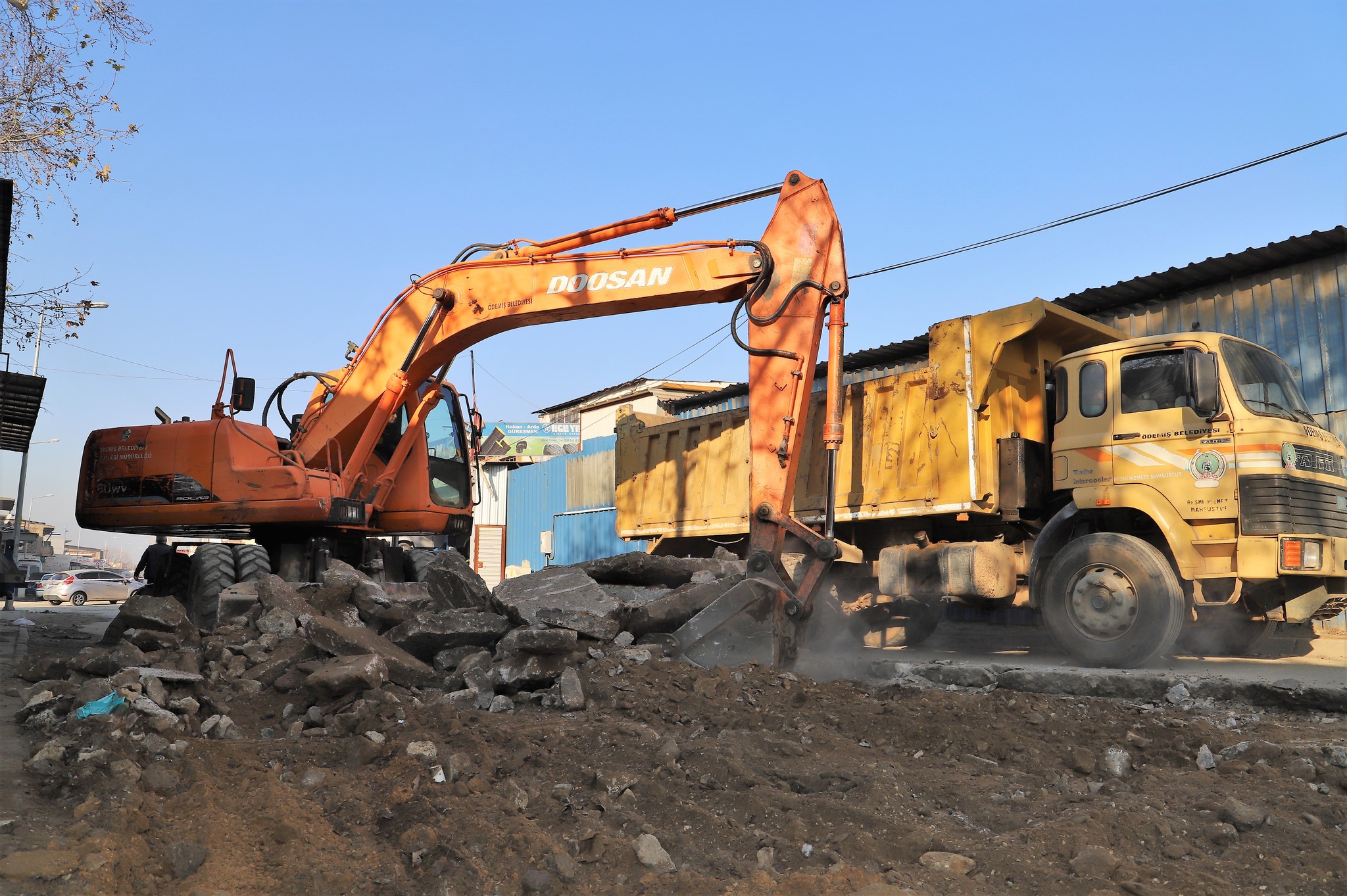 Ödemiş Sanayi Sitesi altyapı çalışmaları tamamlanmış cadde ve sokaklarda Ödemiş Belediyesi ve İzmir Büyükşehir Belediyesi’nin ortaklaşa sıcak asfalt ve kilit parke taş kaplama çalışmaları yeni yılda da devam ediyor. Sanayi Sitesi’nin girişlerinden olan Sanayi Caddesi’nde oldukça yıpranan kaplamanın sıcak asfalt ile yenilenmesi için zemin hazırlığı çalışmalarına başlandı.