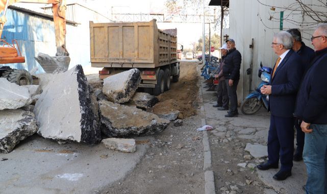 “YENİ YILIN İLK GÜZEL İŞİ” Ödemiş Belediyesi Fen İşleri Müdürlüğü ekiplerince başlatılan hafriyat çalışmalarını yerinde inceleyip esnaflarla fikir alışverişinde bulunan Ödemiş Belediye Başkanı Mehmet Eriş, “Sanayi Caddemiz, Sanayi Sitemize kuzey yönünden ilk girişi sağlıyor. Burada zemin betonunun çok kalın olması nedeniyle su ve kanalizasyon altyapısıyla ilgili sıkıntılar da düşünülerek sıcak asfalt kaplama yapılması öngörülmüştü. İzmir Büyükşehir Belediyemizce yapılan ihaleler neticesinde yeni yılın ilk çalışması buradan başlamış oldu. Ödemiş Belediyemizin ve İzmir Büyükşehir Belediyemizin ortak çalışmasıyla Sanayi Caddemizi rahatlatacak, ulaşım konforunu ve güvenliğini artıracak çalışmalarımız için ekiplerimiz zemin hazırlığı yapacak. Bazen elde olmayan nedenler oluyor, yüklenici firmadan ya da ihale süreçlerinden kaynaklı. Yeni yıl itibariyle yapılan yeni ihalelerle çalışmalar yeniden başlamış oldu. Hava sıcaklığının elverişli olduğu bugünlerde elimizde gelen tüm çabayla yağmur olan günlerin dışında hızlı bir şekilde çalışma gerçekleştireceğiz. Sanayi esnafımıza özlediği temiz ve güzel caddeyi hazırlamış olacağız. Burada yeni ihalenin yapılmasını beklemek durumundaydık. Esnaflarımıza da bizlere gösterdikleri sabır ve anlayış için teşekkür ediyoruz. Yeni yılın ilk güzel işine Sanayi Sitemizden imza atmış olduk” dedi.