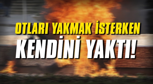 İzmir'de korkunç bir olay yaşandı... Bahçedeki otları yakmaya çalışan 96 yaşındaki Mustafa Korkmaz rüzgarın etkisiyle kendisini de yaktı.