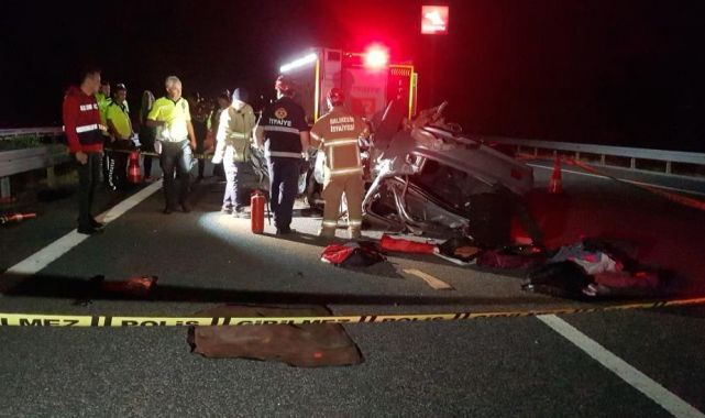 Balıkesir'de meydana gelen feci kazada 3 kişi olay yerinde hayatını kaybetti, 2 kişi ise yaralandı. Otoyoldan İzmir yönüne giden Mehmet Çevirgen (26) idaresindeki 10 SJ 379 plakalı otomobil, Balıkesir Batı gişeleri mevkisinde kontrolden çıkarak bariyerlere çarptı, ardından da karşı şeride geçerek devrildi.Kazada, araçta bulunan Tolunay Acar (24), Niyazi Dönmez (30), Berkay Deniz (24) olay yerinde hayatını kaybetti. Araç sürücüsü Çevirgen ile Serhat Acar'da (20) yaralandı. Çevredeki vatandaşların bilgi vermesi üzerine bölgeye sağlık, itfaiye, polis ve jandarma ekipleri sevk edildi.Balıkesir Atatürk Şehir Hastanesine kaldırılan yaralıların ise hayati tehlikesinin bulunmadığı öğrenildi. Hayatını kaybeden kişiler ise cenaze aracıyla hastane morguna götürüldü.