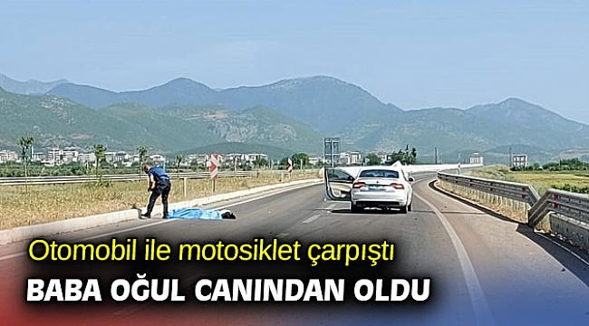 Alınan bilgiye göre, Furkan A. yönetimindeki 31 ABV 497 plakalı otomobil, Hassa- Gaziantep karayolu Girne Mahallesi Ardıçlı kavşağında Erdal Aşık'ın (28) kullandığı 31 APY 45 plakalı motosikletle çarpıştı. Kazada motosiklet sürücü ağır yaralandı, motosikletteki babası Ahmet Aşık (55) olay yerinde hayatını kaybetti.