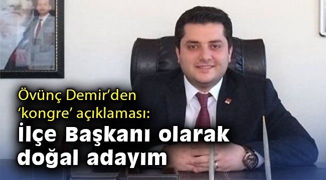 3 adaylı geçmesi beklenen başkanlık yarışında mevcut İlçe Başkanı Övünç Demir’de yerini aldı. Kongrede aday olacağını açıklayan Demir, “Aday olma gibi bir teveccühüm var. Arkadaşlarımızla oturup konuşacağız, en kısa sürede de bir açıklama yapacağım. Açıklamaya da çok gerek yok aslında, zaten ilçe başkanı olarak doğal adayım. Delegasyonun büyük bir çoğunluğunda ilçe başkanlığına aday olmam konusunda bir talep oldu. Şöyle ki ben sürekli düğünlerde, cenazelerde bulunur, taban siyaseti yaparım. Cumhuriyet Halk Partisi delegeleri de bunları iyi takip edip gözlemler, doğru yere de oylarını verirler. O yüzden ciddi anlamda şanslıyım bu konuda. Ben hiçbir zaman aday olayım demedim. Sürekli sahadayım ve çalışıyorum. Ben mevcut ilçe başkanıyım, örgütün de öz evladıyım” dedi.
