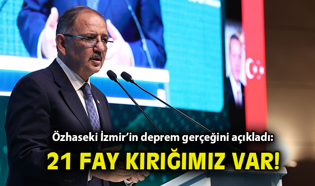 İzmir İş Dünyası Buluşması’nda konuşan Çevre Şehircilik ve İklim Değişikliği Bakanı Mehmet Özhaseki, “İzmir’de bizim tespitlerimize göre 6 ile 7,2 arasında deprem üretebilecek 21 fay kırığımız var. Hangisi hangi tarihte nasıl hareketlenecek böyle bir bilgi yok. Çok riskli bir coğrafya üzerinde oturduğumuzu biliyorsunuz. Bizim tespitimize göre 180 bin bağımsız birim riskli gözüküyor. İlk etapta bir an önce yapılması gereken 36 bin bina var. Bir an önce yapılması gerekiyor” dedi.