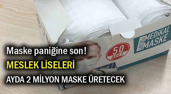 Corona virüsünün yayılması ile birlikte cerrahi maskelere olan ihtiyaç da arttı. Hatta cerrahi maskeler karaborsaya bile düştü. İyi haber ise Milli Eğitim Bakan Yardımcısı Mahmut Özer'den geldi. Özer, meslek liselerinin yeni tip corona virüs önlemleri kapsamında ayda 2 milyon cerrahi maske üretebileceğini bildirdi.