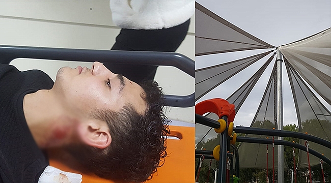 Parkı'nda oyun gruplarının üstündeki gölgeliklerden biri, 19 yaşındaki Egemen