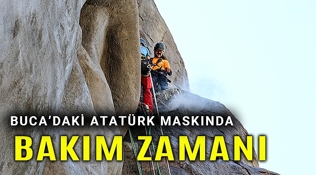 Buca’nın hatta İzmir’in simgeleri arasında yer alan Türkiye’nin en büyük, dünyanınsa 10’uncu büyük rölyef maskı olan Atatürk maskı, Buca Belediyesi tarafından bakıma alındı. Çaldıran mahallesi çevre yolu güzergahına bakan kayalıklarda konumlanan maskın bakım ve temizlik işlemleri için profesyonel dağcılık ekibinden destek alındı.