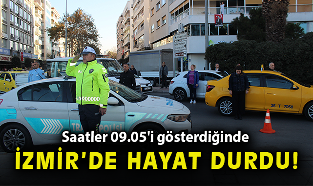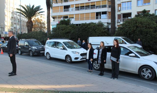 Seyir halinde olan sürücüler de araçlarından inerek Atatürk'ü andı. O anlar, havadan görüntülendi. Anma programında İzmir Valisi Yavuz Selim Köşger, Ege Ordusu Garnizon Komutanı Kemal Yeni ve İzmir İzmir Büyükşehir Belediye Baskanı Tunç Soyer, Atatürk heykeline çelenk bıraktı. Program, Atatürk Kültür Merkezinde düzenlenecek anma etkinliği ile devam edecek.