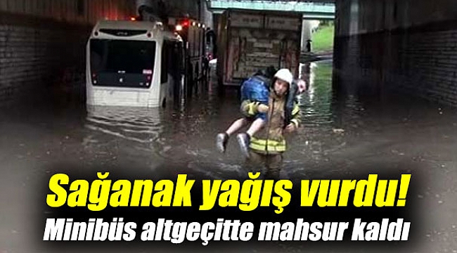 Sağanak yağış vurdu! Minibüs altgeçitte mahsur kaldı