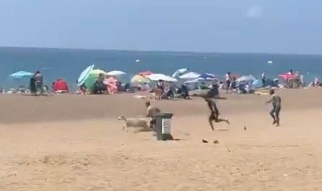 Sahibinden kaçan kurbanlık kuzu plajı birbirine kattı
