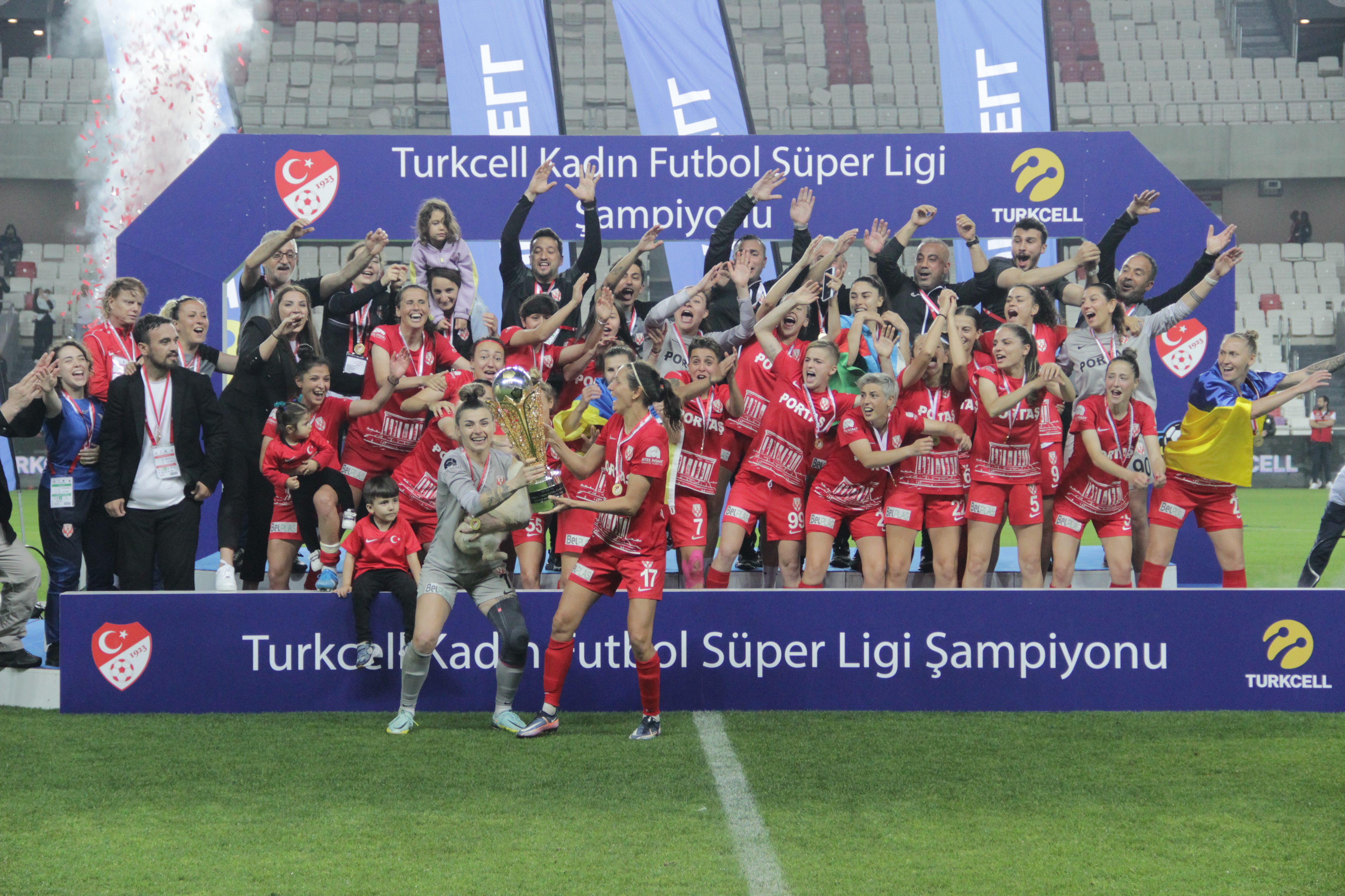 Turkcell Kadın Futbol Süper Ligi Finali'nde Ankara Büyükşehir Belediyesi Fomget ile Fenerbahçe’nin Alsancak Mustafa Denizli Stadı'nda oynadığı mücadelenin normal süresi 1-1 sona erdi. Uzatma dakikalarında Fenerbahçe’yi 4-2 mağlup eden Ankara Büyükşehir Belediyesi Fomget, Turkcell Kadın Futbol Süper Ligi şampiyonu oldu. Şampiyon Ankara Büyükşehir Belediyesi Fomget, kupasını Turkcell Genel Müdürü Murat Erkan ile TFF Başkan Vekili ve Kadın Futbolu Sorumlusu Nüket Küçükel Ezberci’nin elinden aldı.