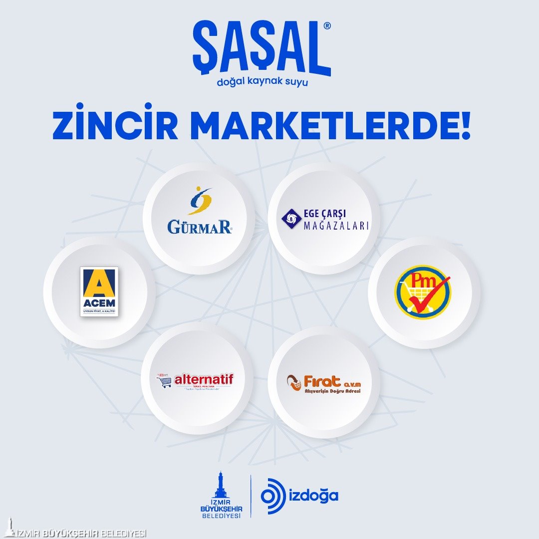 İzmir Büyükşehir Belediyesi şirketlerinden İzDoğa’nın çalışmalarıyla tekrar üretilmeye başlanan asırlık Cumhuriyet markası Şaşal Su, çok yakında raflarda olacak. Şaşal Su’yun satışı için ilk etapta 6 zincir market ile anlaşıldı. El sıkışılan ilk marketler arasında Gürmar, Ege Çarşı Mağazaları, Acem Market, Fırat AVM, Alternatif Marketler ve Promosyon Marketleri yer alıyor. Ayrıca Şaşal Su için bayilik ve satış noktası olma başvuruları da başladı.