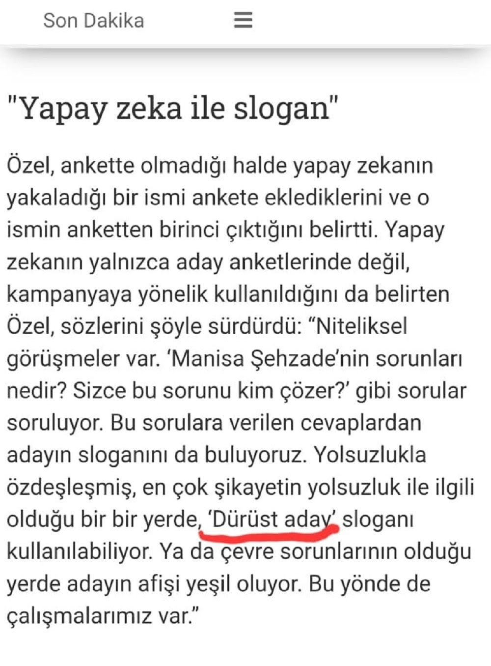 CHP’nin İzmir’de aday ve slogan belirlerken yapay zekaya sordukları soruların doğru olduğunu ama aldıkları yanıtların kendilerini işaret ettiğini göremediklerini belirten AK Parti İzmir İl Başkanı Bilal Saygılı, konuya ilişkin şunları söyledi; “Halka sorulası gerekeni, yapay zekaya sormuşlar. Hadi sordular, yapay zekâ mucizesini yok sayacak değiliz. Ama; aldıkları yolsuzluk şikâyeti olan yerlerle ilgili yanıtları hiç üstlerine alınmadan açıklama yapıyorlar. Maharetmiş gibi de “doğru-dürüst” sloganını buna göre belirlediklerini söylüyorlar. Şaka gibi gerçekten. Bu ne demek? Kendilerinin İzmir’i, Büyükşehir Belediye Başkan Adayları Cemil Tugay’ın son 5 yıl Karşıyaka’yı yönettiği yerde ‘yolsuzluk’ şikâyeti var demek. Doğru, Dürüst tarifine kendileri yüzünden ihtiyaç duymuşlar demek. Bu ne demek? Tugay’ın selefi Tunç Soyer, daha önceki başkanları Aziz Kocaoğlu ‘doğru-dürüst değildi’ demek. CHP’nin İzmir’de aynaya bakma alışkanlığı zaten hiç yoktu; yapay zekâ onlara acı gerçeği sunmuş, bu kez de üstlerine hiç alınmamışlar.”Soyer’in yapamadıkları, Dağ’ın vaat ettikleri olmasaydı…CHP Büyükşehir Adayı Cemil Tugay’ın iz sürdüğünü, özgün ve somut vaatler yerine taklidi tercih ettiğini vurgulayan İl Başkanı Bilal Saygılı; “Tunç Soyer’in yapamadıkları ve yanlışları ile Adayımız Hamza Dağ’ın ayakları yere basan vaat ve projeleri olmasaydı ne söyleyecekti merak ediyoruz. Adayları Tugay; 90 dakika uygulaması, trafik sorunu çözümleri, battı çıktılar, kavşaklar, su indirimi, kütüphaneler gibi birçok konuda ya mevcut başkanlarının yapamadığını ya da adayımız Dağ’ın verdiği sözlerin, ortaya koyduğu vizyonun peşinden gidiyor. Ya eleştiriyor ya da tekrar ediyor. Ya değerler siyaseti yaparak prim yapmaya çalışıyor ya da yine tekrar ediyor! Şehirler, başkanlarının ufku kadar gelişir. Tugay’ın ufku, bizim söylediklerimizin izinden gitmekten ibaret. Ufku olmayanın bu şehre hiçbir faydası olamaz. Sandığa gitmemize sayılı günler kaldı. İzmir’e sunabildikleri bu. CHP’li ve kararsız olan vatandaşlarımıza sesleniyorum; İzmir’i bu zihniyetin eline bir 5 yıl daha bırakacak mıyız? Kaybolan yıllara yılları mı ekleyeceğiz, yoksa gerçek hizmeti, gerçek belediyeciliği mi tercih edeceğiz! İşte 31 Mart’ta bu seçimi yapacağız. İnanıyorum ki; artık bizimle yol yürüyeceksiniz” diye konuştu.