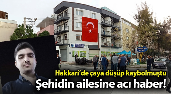Hakkari'nin Derecik ilçesinde 2 gün önce Hacıbey Çayı'na düşen ve cansız bedeni bugün bulunan şehidin İzmir'deki baba ocağına ateş düştü. Acı haberi alan şehidin yakınları yasa boğulurken, şehidin yaşadığı ev ve sokak Türk bayraklarıyla donatıldı.