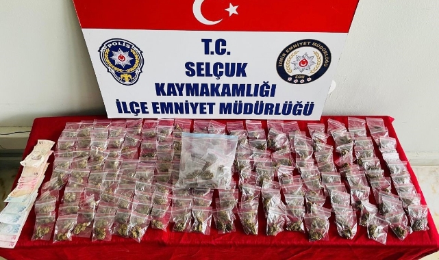 Selçuk Cumhuriyet Başsavcılığının yürüttüğü soruşturmalar kapsamında, İlçe Emniyet Müdürlüğü Suç Önleme ve Soruşturma Büro Amirliği ekipleri ilçenin önemli noktalarına operasyon düzenliyor.Operasyon sonucunda durdurulan bir araçta arama yapılan aramada, satışa hazır halde 228 adet naylon poşet içerisinde toplam daralı ağırlığı 482 gram olan skunk esrar ele geçirildi.Operasyon sonucu yakalanan şüpheli şahıs, uyuşturucu ticareti suçundan gözaltına alındı. Emniyetteki işlemlerinin tamamlanmasıyla birlikte savcılığa sevk edilen şahıs, çıkarıldığı mahkeme tarafından tutuklanarak cezaevine gönderildi.