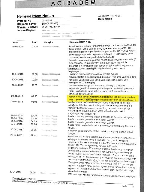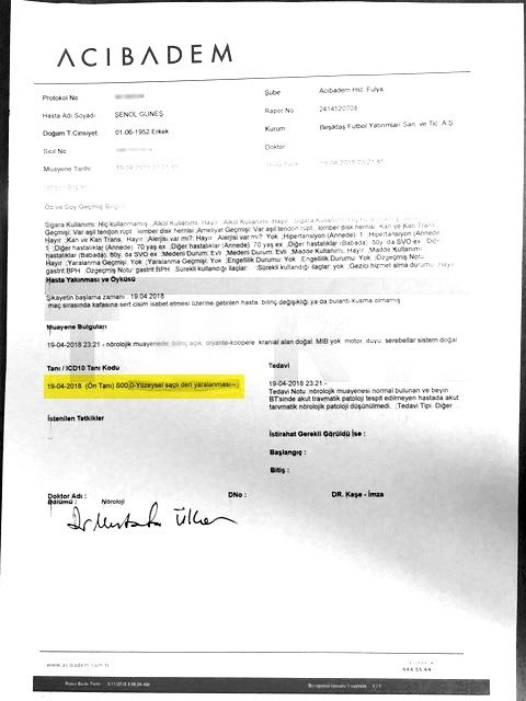 Lig bitti ama F.Bahçe-Beşiktaş maçında yaşanan olayların yankıları hala devam ediyor...Habere göre; teknik direktör Şenol Güneş'in tribünden atılan cisim ile kafasının yarılması ile başlayan ve sonrasındaki gelişmelerle tırmanan olaylarda tecrübeli teknik adamın bir şeyinin olmadığı ve numara yaptığı iddia edilmişti.F.Bahçe cephesinden başkan Aziz Yıldırım, Güneş için "Tiyatro yapıyor' ifadelerini kullanmış ve Beşiktaş'ın hocasının adı 'tiyatrocu'ya çıkmıştı.Gelinen son noktada yaşanan olayların ardından Acıbadem Hastanesi'ne kaldırılan Şenol Güneş'e ait doktor raporlarına ulaşıldı.TANSİYONU 19'A YÜKSELDİ