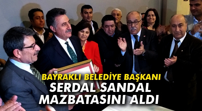 Bayraklı seçmeninden yüzde 55.11 oy alarak CHP Bayraklı İlçe Belediye Başkanı seçilen Serdar Sandal, bugün İlçe Seçim Kurulu'ndan mazbatasını aldı.