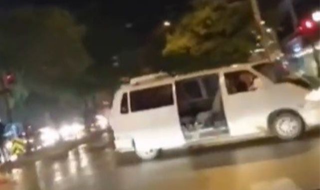 Seyir halinde kapısı açık minibüsten böyle düştü