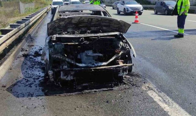 Gebze-Orhangazi-İzmir Otoyolu'nda seyir halinde olan bir otomobil, motor bölümünden önce dumanlar çıktı ardından alev aldı. İçinde 3 kişinin bulunduğu otomobilin sürücüsünün son anda emniyet şeridine çekip aracı terk etmeleri ile alev topuna dönen otomobil küle döndü.