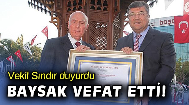 KORONAYA YENİK DÜŞTÜBornova Belediye Başkanı Dr. Mustafa İduğ da paylaştığı mesajda "İzmir’in büyük değerini Kemal ağabeyimizi kaybettik, çok üzgünüm. Karşıyaka eski Belediye Başkanı, duayen sanayici, Boşnakların simge ismi Kemal Baysak ağabeyimiz Koronaya yenik düştü. Kendisine Allah’tan rahmet, Baysak ve Terbay ailelerine başsağlığı diliyorum. Mekanı cennet olsun" ifadelerini kullandı.