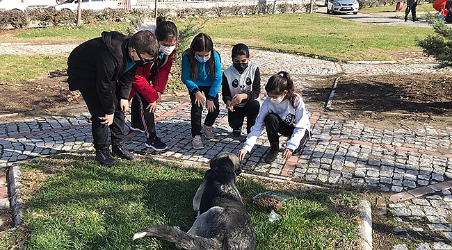 imkanları ile topladıkları mamalar ile okul çevresinde bulunan hayvanlara