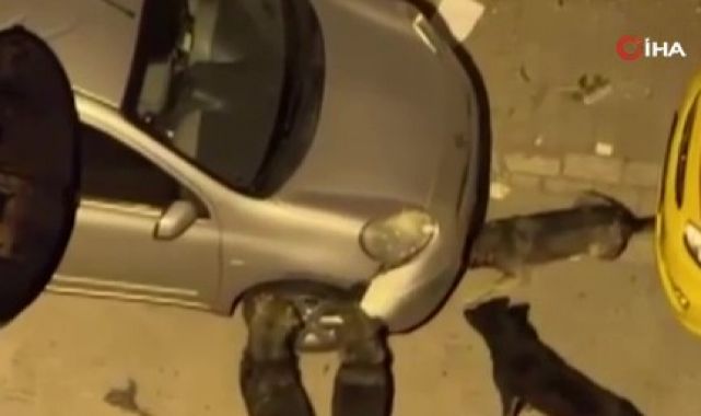 Sokak köpekleri park halindeki aracı parçaladı