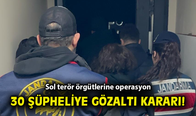 İzmir Cumhuriyet Başsavcılığı koordinesinde, sol terör örgütlerine finans sağladıkları belirlenen 30 şüpheliyi yakalamaya yönelik operasyon gerçekleştirdi. İzmir İl Jandarma Komutanlığı Terörle Mücadele (TEM) Şube Müdürlüğü ve İstihbarat Şube Müdürlüğü ekiplerinin, İzmir merkezli İstanbul, Hatay, Tekirdağ, Mersin, Malatya, Diyarbakır, Manisa, Samsun illerinde gerçekleştirdiği eş zamanlı operasyonda, hakkında gözaltı kararı bulunan 30 şüpheliden 24'ü yakalandı.Gözaltına alınan şüpheliler sorgulanmak üzere jandarmaya götürülürken, 2'si yurt dışında bulunan toplam 6 şüpheliyi yakalama çalışmalarının sürdüğü kaydedildi.