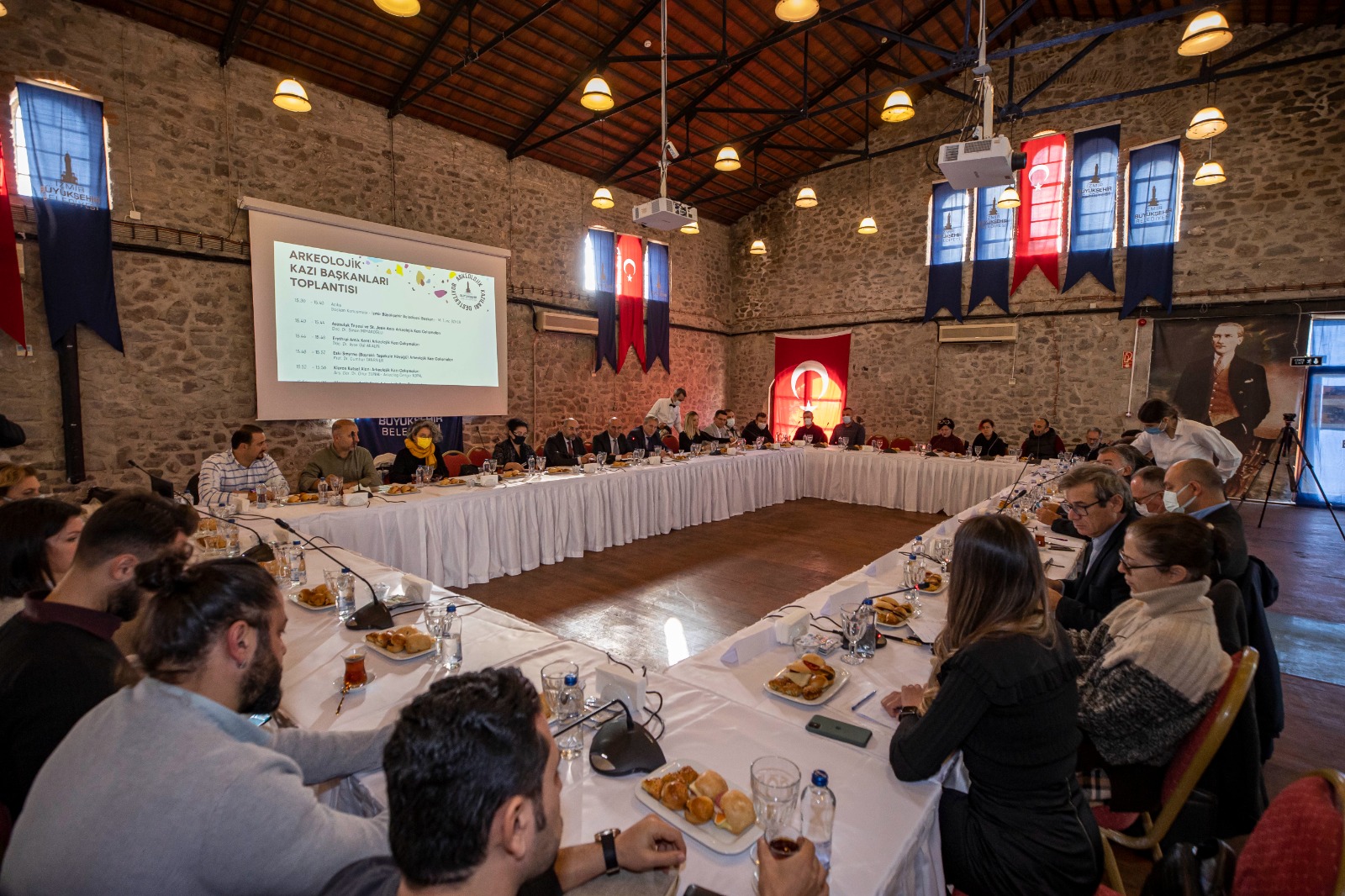 Toplantının açılış konuşmasını yapan Başkan Tunç Soyer, İzmir’de 13 Haziran’da başlayacak ve üç gün sürecek Uluslararası İzmir Arkeoloji ve Toplum Buluşması’nı düzenlemeyi hedeflediklerini söyleyerek “Akdeniz çanağındaki kazı yöneticilerini sizinle buluşturmak istiyoruz. Bunun temasını belirlemeliyiz. Belki üst çatı Akdeniz olmalı. Çünkü İzmir’in Akdeniz ile ilgili bir iddiası var. Sadece ticarette değil, tarımda, turizmde ve lojistikte de İzmir’in Akdeniz iddiasını sürdüreceğiz” dedi. Kentte devam eden kazı çalışmalarıyla ilgili bütüncül bir İzmir fotoğrafı ortaya koyma gayreti içinde olduklarını belirten Başkan Soyer, “Sizlerin tek tek yürütmüş olduğunuz çalışmaların bölgelerinizde çok büyük önemi var kuşkusuz. Ancak bunların birbirleriyle olan irtibatını ve İzmir için anlamını ortaya koymalıyız. Bunu çok önemsiyoruz” ifadelerini kullandı.