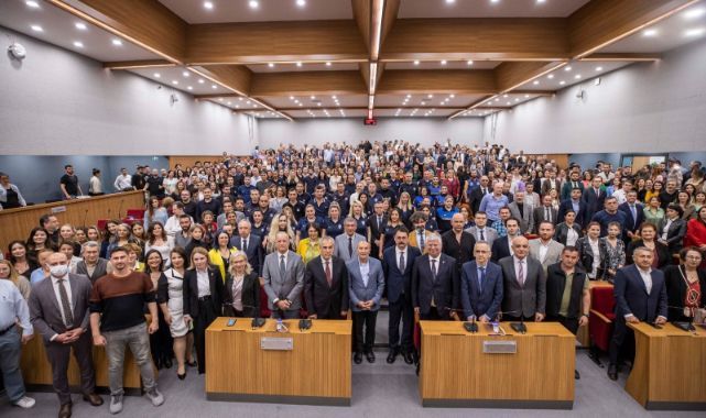 Başkan Tunç Soyer, “Görevimin dördüncü senesi dolarken emin olun ki bu kurumda çalışıyor olmaktan, sizlerle beraber olmaktan, böyle büyük bir sorumluluğu üstlenmekten çok gurur duyuyorum. Çünkü İzmir Büyükşehir Belediyesi'nin ürettiği hizmetlerin kalitesinin, yaptıklarının, çalışmalarının hakikaten çok farklı olduğunu görüyorum” diyerek sözlerine başladı.