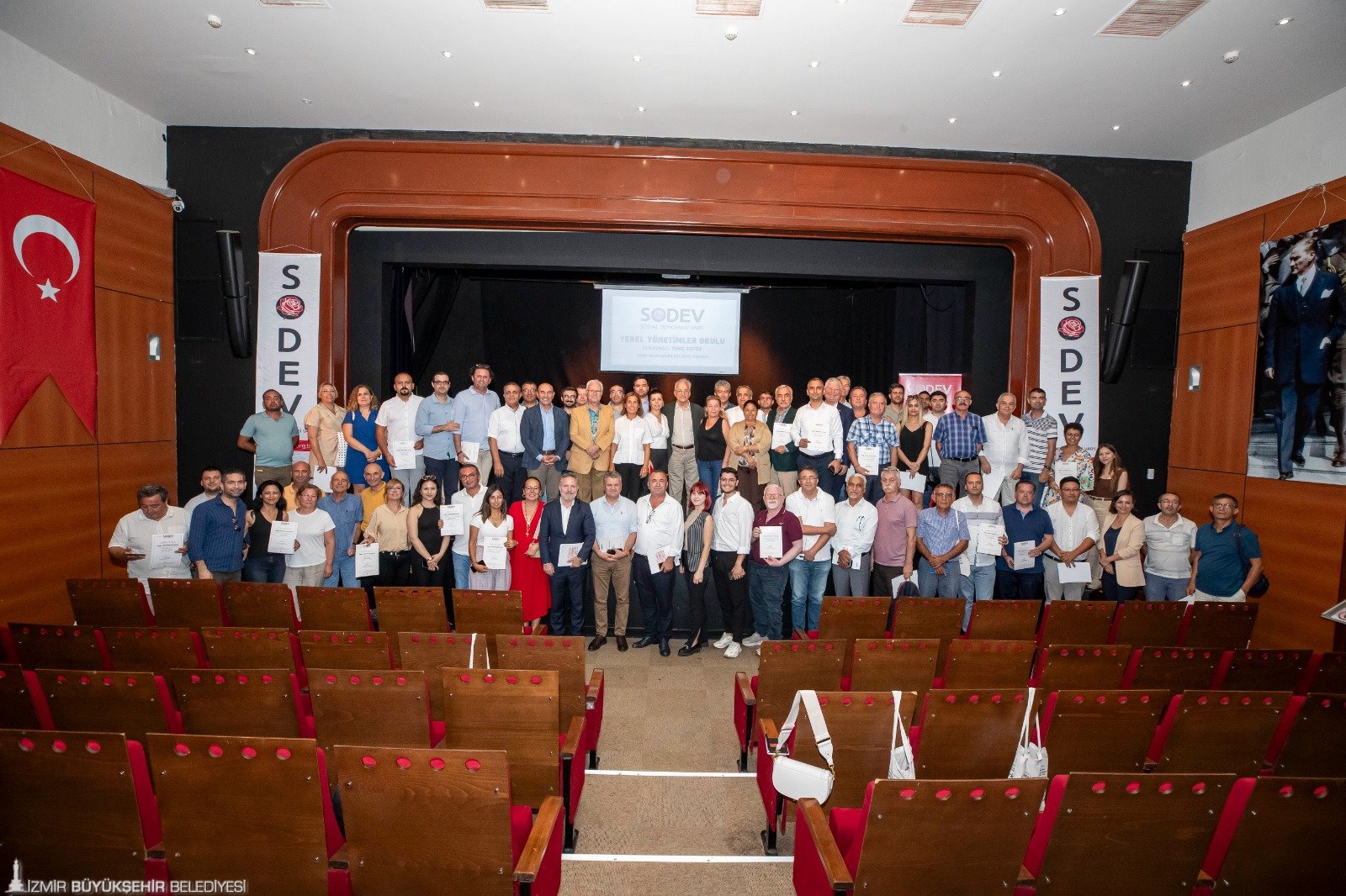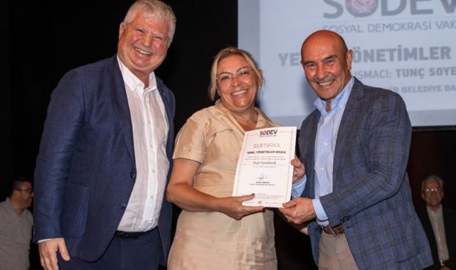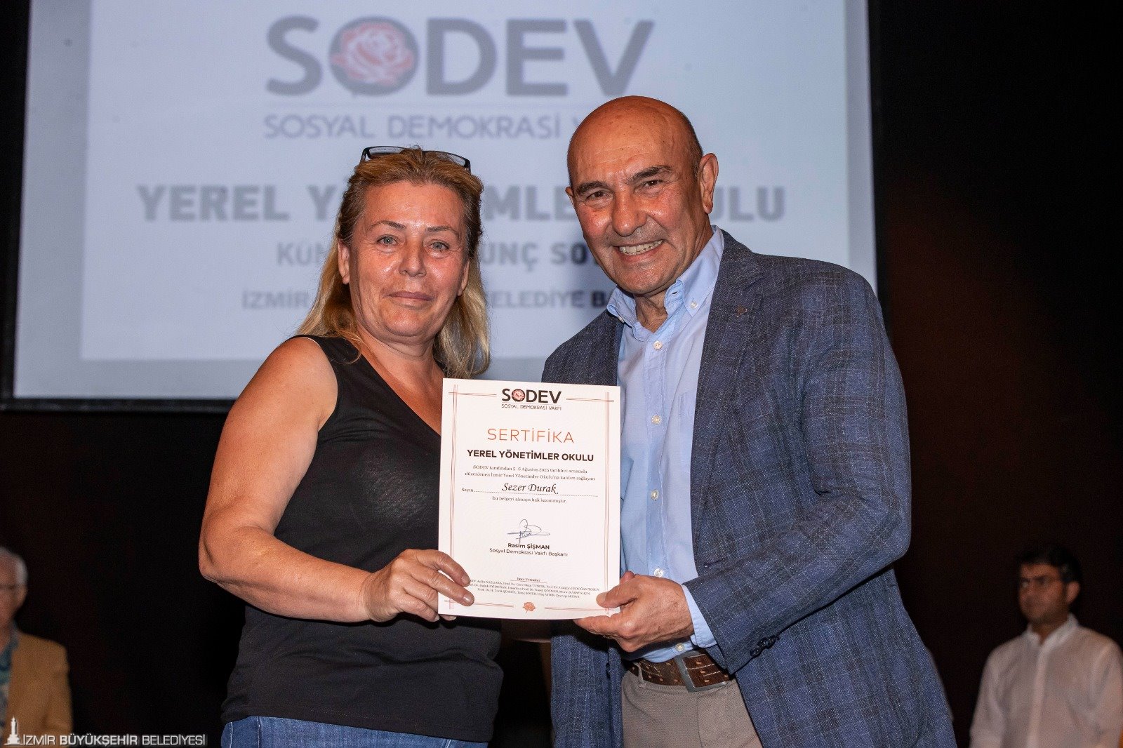 İzmir Büyükşehir Belediye Başkanı Tunç Soyer, Sosyal Demokrasi Vakfı'nın (SODEV) İzmir Sanat'ta düzenlediği Yerel Yönetimler Okulu Eğitim Programı'na katıldı. Kapanış konuşmasını yapan Başkan Tunç Soyer, 2019 yılında göreve geldiğinden bu yana yaptığı çalışmaları ve hedeflerini anlattı. Başkan Soyer'in konuşmasını, geçmiş yıllarda devlet bakanlığı, dışişleri bakanlığı, başbakan yardımcılığı ve Ankara Büyükşehir Belediye Başkanlığı görevlerini yürütmüş, eski Sosyal Demokrat Halk Partisi Genel Başkanı Murat Karayalçın, CHP 26. Dönem Milletvekili Zeynep Altıok, Sabancı Üniversitesi Öğretim Üyesi Emeritus Prof. Dr. Korel Göymen, akademisyenler, bürokratlar ve vatandaşlar da takip etti. Program sonunda eğitime katılanlara sertifika takdim edildi.