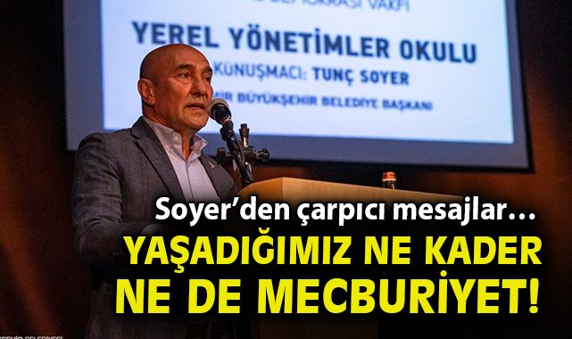 Başka bir dünyanın, başka bir yerel yönetimin, başka bir memleketin mümkün olduğunu göstermeye çalıştıklarını belirten Başkan Soyer, “İçinde yaşadığımız şeyin ne bir mecburiyet, ne de bir kader olmadığını biliyoruz. Yerelden başlayarak değişebileceğine inanıyoruz. Nazım'ın dediği gibi; '70'inde bile zeytin dikeceksin, hem de öyle çoluk çocuğa kalacak diye değil hayata inandığından ölüme inat' diyor. Yürüttüğümüz bütün bu hikâyenin arkasındaki ana cümle budur. Hayata inanıyoruz daha güzel bir hayatın mümkün olduğunu biliyoruz” diye konuştu.