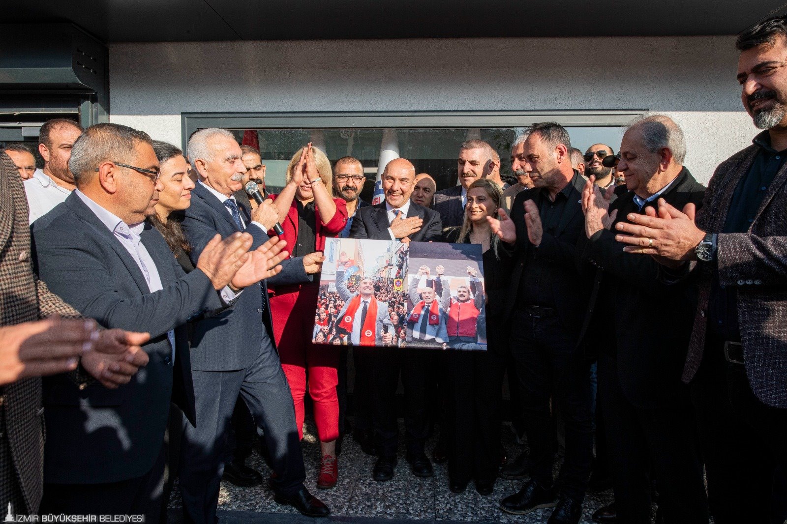 İzmir Büyükşehir Belediye Başkanlığı koltuğunda yaklaşık 5 yılı geride bıraktığını söyleyen Tunç Soyer, “5 yıl oldu. 5 yıl çok büyük sıkıntılarla geçti. Çok büyük felaketlerle yüzleştik. Ama şunu biliyorum ki bu 5 yılı bu kadar hafif hasarlarla atlattıysak, her birinizin emeği sayesinde, her birinizin katkısı nedeniyle… İzmirlinin yüzünü güldürecek, onları bu felaketlerden en az mağduriyeti yaşayacak şekilde koruyacak, kollayacak şekilde herkes elinden geleni yaptı. Tüm İzmir adına hepinize teşekkür ediyorum. Hayatta en sevdiğim sloganlardan biri ‘Kurtuluş yok tek başına. Ya hep beraber ya hiç birimiz’. Çünkü gerçekten kurtulmak gerekiyor. Bu yüksek enflasyonu yaratan düzenden, İnsanların özgürlüklerini yok sayan, hakkını ve hukukunu yok sayan bu düzenden kurtulmak gerekiyor. Kurtuluş ancak el ele verirsek olacak” diye konuştu.