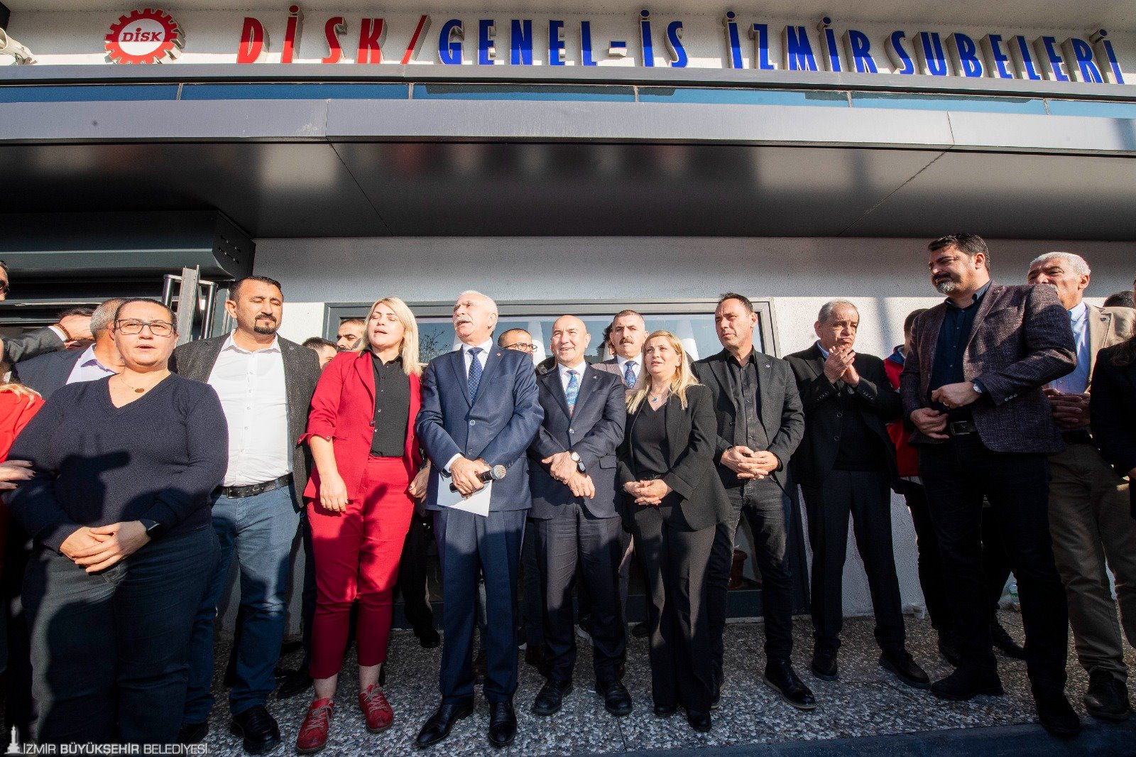 İzmir Büyükşehir Belediye Başkanı Tunç Soyer, Devrimci İşçi Sendikaları Konfederasyonu (DİSK) Ege Bölge Temsilciliği’nin daveti üzerine işçilerle buluştu. DİSK’in Basmane semtinde bulunan sendika binasında yüzlerce işçi tarafından alkışlar ve sloganlarla karşılanan Başkan Tunç Soyer’e, CHP İzmir Milletvekili Rıfat Nalbantoğlu ile İzmir Büyükşehir Belediyesi Genel Sekreteri Barış Karcı da eşlik etti. Buluşmada, “Kurtuluş yok tek başına, ya hep beraber ya hiç birimiz”, “Asla yalnız yürümeyeceksin” sloganları atıldı.