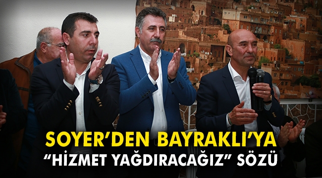 Nafiz Gürman Mahallesi’ndeki programda konuşan Soyer “Ben buradan size söz veriyorum. Büyükşehir Belediyesi’nin senelik bütçesi 6 katrilyonluk bütçesinden Bayraklı’ya damlasa yetecek ama biz damlatmayacağız akıtacağız. Serdar Sandal kardeşim, bana hangi projeyi getiriyorsa yapmak için canla başla çalışacağım. Serdar Başkan, Bayraklı için büyük bir şans, pırlanta gibi, çalışkan bir adam. Başka bir hayatın mümkün olduğunu tüm Bayraklı’ya göstereceğiz” dedi.