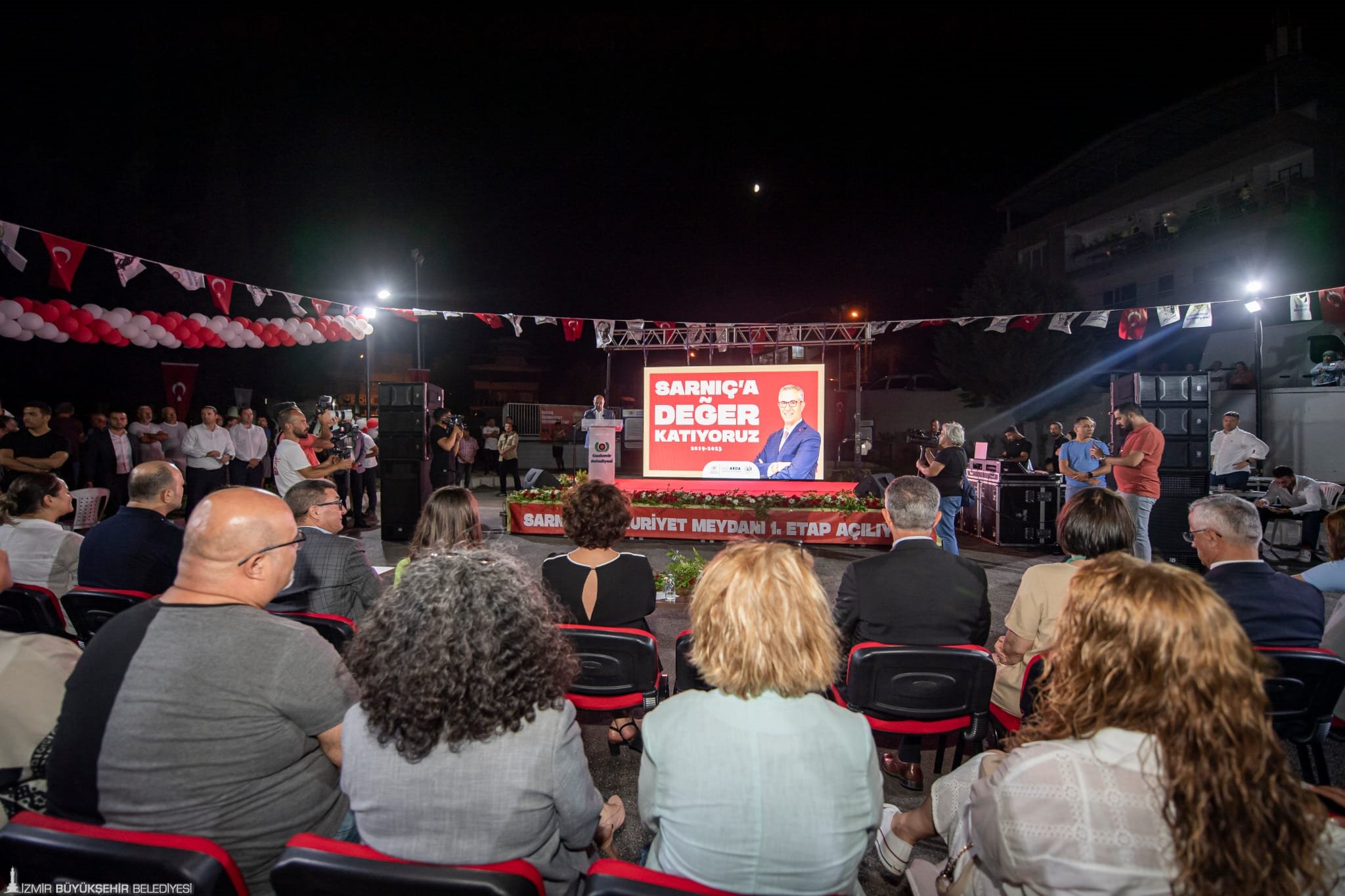 İzmir Büyükşehir Belediye Başkanı Tunç Soyer, 10 bin metrekare büyüklüğündeki bu meydanın Gaziemir Sarnıç’a çok iyi geleceğini belirterek “Çünkü her şehir ruhunu, enerjisini meydanlarına ve tüm açık alanlarına borçludur. Göreve geldiğimiz günden beri İzmir’in tamamında herkese açık kamusal alanları, meydanları ve parkları çoğaltmak için var gücümüzle çalışıyoruz. Bu hizmetleri ısrarla sürdürmemiz sadece şehircilik anlayışımızın bir sonucu değil. Biliyoruz ki meydanlar aramızdaki duvarların yıkıldığı yerler. Biliyoruz ki parklar, ekonomik durumumuz her ne olursa olsun birbirimizle yan yana durduğumuz yerler. Kamusal alanlar, aramızdaki faklardan çok, ortak yanlarımızın olduğunu idrak ettiğimiz ve her gerektiğinde tek yumruk olduğumuz mekanlar. İşte bu nedenle bu nedenle Gaziemir Belediyemizin bu hizmeti çok değerli. Bu meydanla, İzmir’in özgürlük coğrafyasına yeni bir işaret daha eklenmiş oldu” diye konuştu.