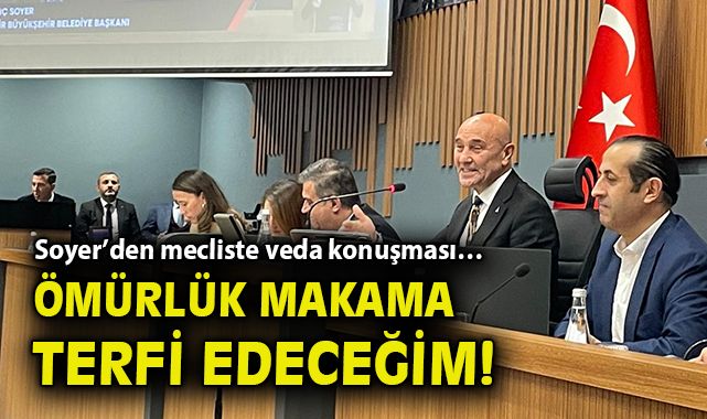 Bugüne kadar ki hattının İzmir Büyükşehir Belediyesi olduğunu, bundan sonraki sathının ise sineyi millet olduğunun altını bir kere daha çizen Soyer, “İzmir Büyükşehir Belediye Meclisimizin değerli üyeleri... Biliyorum ki, görevimiz sona erse de, İzmir’de ektiğimiz her bir tohumun takipçisi olmaya, mücadelemizi sürdürmeye devam edeceğiz. Bugüne kadarki hattımız İzmir Büyükşehir Belediyesi’ydi. Bundan sonra sathımız, sineyi millettir. Tüm Türkiye’dir. Cumhuriyetimizin yeni yüzyılında, Türkiye’yi demokrasiyle taçlandırma mücadelemize devam edeceğiz. Çünkü biz bu mecliste mensubu olduğumuz siyasi partiler kadar milletin kayıtsız şartsız egemenliğini de temsil ediyoruz. Cumhuriyet halkımızın bize emanetidir. Demokrasi herkesin veli nimetidir. 86 milyon el ele, omuz omuza, büyük bir coşku ve kararlılıkla yürümeye ve o emanete sahip çıkmaya devam edeceğiz. Birlikte görev yaptığımız bu meclis çatısı altında yaşadıklarımız ve mutlulukla anılacak güzel hatıralar için her birinize ayrı ayrı teşekkür ediyorum. Daima Cumhuriyet, daima demokrasi, daima İzmir!” dedi.