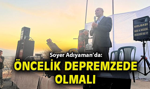 İzmir Büyükşehir Belediye Başkanı Tunç Soyer, Adıyaman'da Gölbaşı ilçesi ile Kalemkaş Köyü'nü ziyaret etti. Depremzede yurttaşların yaşadığı sorunların devam ettiğini belirten Başkan Soyer, “Önümüz kış. Biz yerel yönetim olarak gücümüz yettiğince destek vereceğiz ama asıl büyük çözüm devletin üreteceği çözümdür. Devlet önceliğini vatandaşlarımızın dertlerine ayırmak zorundadır” dedi.