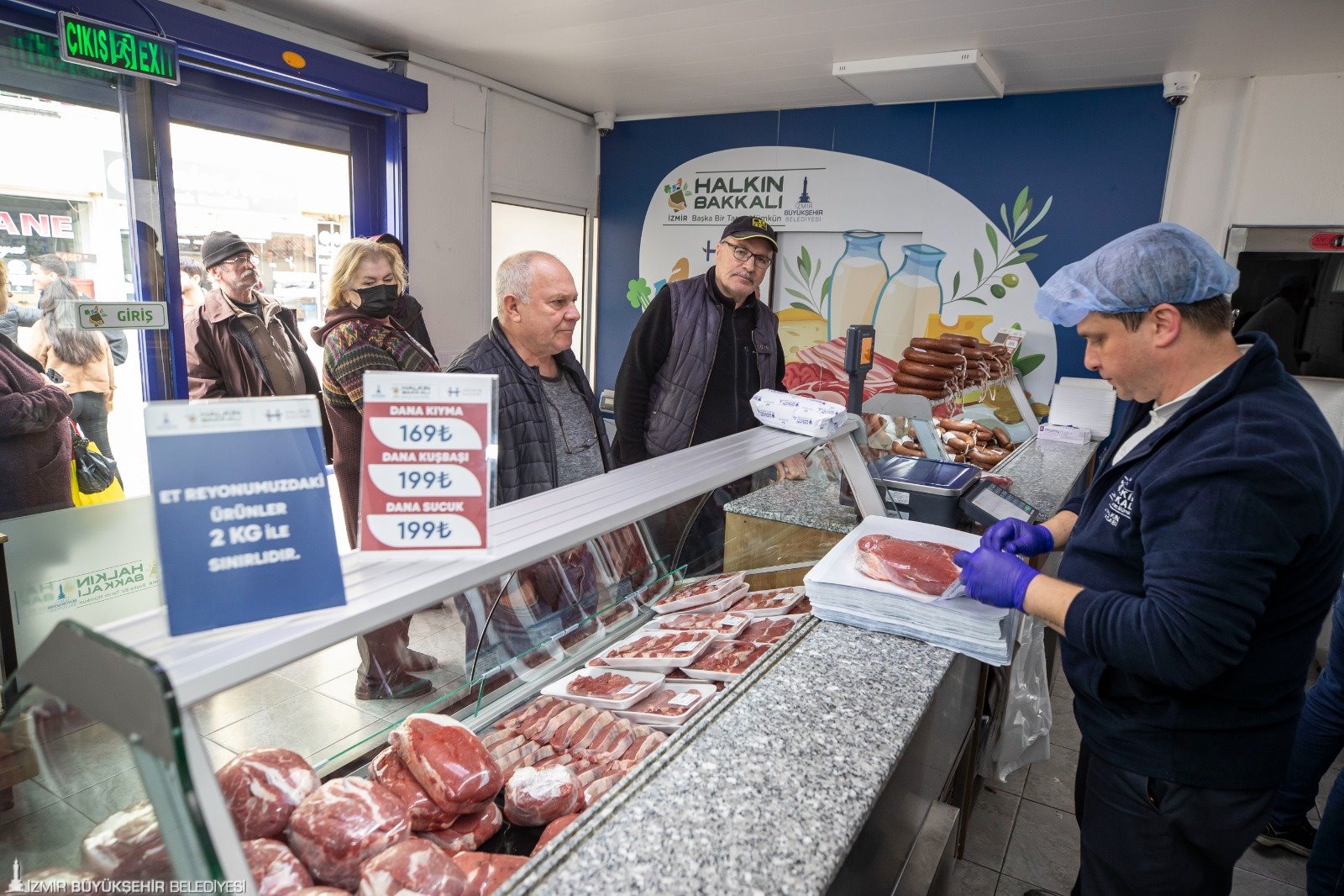 İzmir Büyükşehir Belediyesi'nin halka sağlıklı, ucuz ve güvenilir gıda ulaştırmak için kentin farklı bölgelerinde açtığı Halkın Bakkalları, "Halkın Kasabı" reyonlarıyla yenilendi. Büyükşehir iştiraki İzTarım A.Ş.'nin kırsalda küçük üreticiye can suyu olan Ödemiş Et Entegre Tesisi'nde hazırlanan işlenmiş ve karkas et ürünleri, artan enflasyona karşı uygun fiyatla İzmirlilere sunuldu. İzmir Büyükşehir Belediye Başkanı Tunç Soyer, Halkın Kasabı’nın Bornova Erzene’deki şubesini ziyaret ederek alışveriş yapan vatandaşlarla bir araya geldi. İzTarım Genel Müdürü Murat Onkardeşler’den bilgi alan Başkan Tunç Soyer, Ramazan boyunca fiyatlarda artışa gitmeyeceklerini söyledi.
