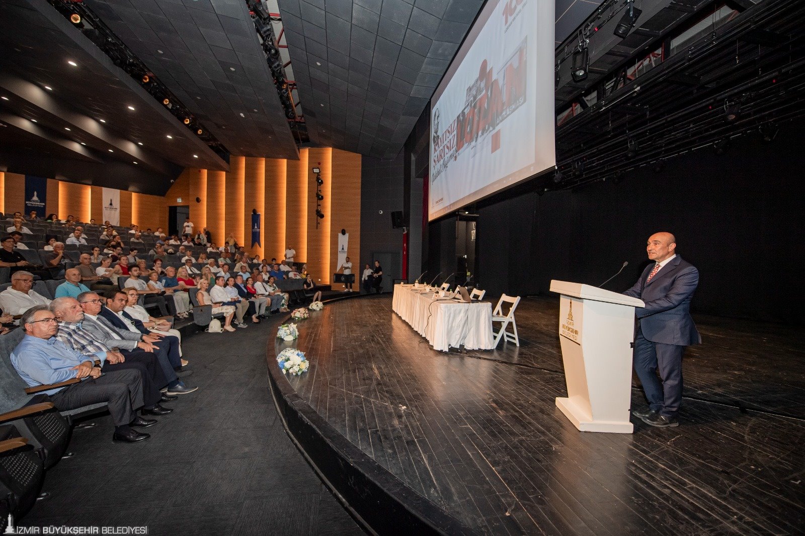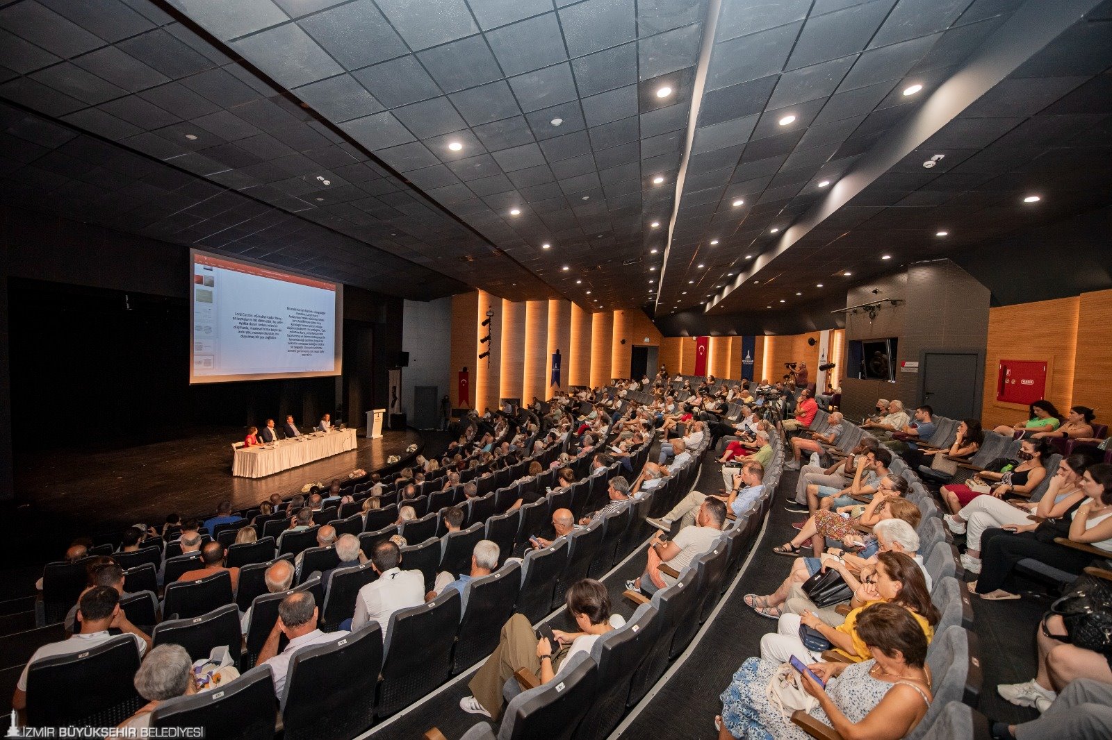 İzmir Büyükşehir Belediyesi Şehir Tiyatroları İsmet İnönü Sahnesi’nde izleyicilerle buluşan panele, İzmir Büyükşehir Belediye Başkanı Tunç Soyer, Dışişleri Bakanlığı İzmir Temsilcisi Büyükelçi Naciye Gökçen Kaya, Gaziemir Belediye Başkanı Halil Arda, İYİ Parti İzmir İl Başkanı Sinan Bezircilioğlu, siyasi parti temsilcileri, akademisyenler, sanatçılar, öğrenciler, sivil toplum kuruluşu temsilcileri ve çok sayıda yurttaş katıldı.