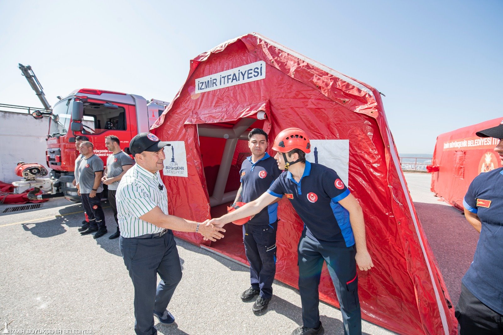 İzmir Büyükşehir Belediyesi İtfaiye Dairesi Başkanlığı öncülüğünde, Büyükşehir’in tüm birimlerinin bulunduğu “Afete Hazır İzmir” tatbikatı yapıldı. Afet öncesi, afet sırası ve afet sonrasında yapılması gereken çalışmalar, hazırlanan tatbikat senaryoları canlandırıldı. Tatbikat, İzmir Büyükşehir Belediye Başkanı Tunç Soyer’in, Afet Koordinasyon Merkezi'nde (AKOM) itfaiye telsizinden “Tunç Başkandan 16-55'e. Tatbikatımızı başlatıyoruz. Kolaylıklar diliyorum” anonsu ile başladı. 360 personelin katıldığı tatbikatta, olası bir deprem sonrası yapılması gereken tüm çalışmalar 23 farklı senaryo ile canlandırıldı.