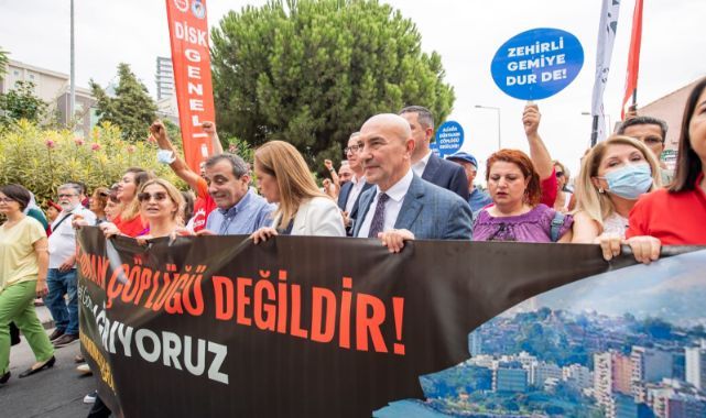 Dava başvurusundan önceki basın açıklamasında Başkan Tunç Soyer, "Ben İzmir Büyükşehir Belediye Başkanı olarak söz veriyorum. Son nefesime kadar İzmir’in ağacını, denizini, Aliağa’sını korumak için canla başla çalışacağım. O gemiyi hep birlikte buradan geldiği gibi geri göndereceğiz” dedi. Brezilya donanmasına ait asbestli Nae Sao Paulo dev uçak gemisine Çevre, Şehircilik ve İklim Değişikliği Bakanlığı tarafından Aliağa’da verilen söküm izni yargıya taşındı. İzmir Büyükşehir Belediye Başkanı Tunç Soyer, İzmir Büyükşehir Belediyesi, TMMOB Çevre Mühendisleri Odası, İzmir Tabip Odası, İzmir Barosu, Türkiye Barolar Birliği, EGEÇEP Derneği ve bir grup yurttaş İzmir Bölge Adliye Mahkemesi’nde Brezilya’ya ait Sao Paulo gemisinin Aliağa’da sökümü işleminde yürütmenin durdurulması talebiyle dava açtı. Çevre, Şehircilik ve İklim Değişikliği Bakanlığı’na karşı açılan davanın 34 sayfalık dilekçesinde söküm işleminin Anayasa, Türk Ceza Kanunu, Çevre Kanunu, Radyasyon Güvenliği Kanunu, İdari Yargılama Usulü Kanunu, Basel Sözleşmesi, İzmir Protokolü, Rio Bildirgesi ve diğer uluslararası antlaşmalara aykırılığı vurgulandı. Gemideki asbest, madeni yağlar, arsenik, kurşun, krom, bakır, çinko, civa, nikel ve kadminyum gibi ağır metallerin ve radyoaktif kirliliğin toplum ve çevre sağlığına olumsuz etkilerinin altının çizildiği dilekçede, “Yaşam hakkına yönelik tehlikenin büyüklüğü ve sürecin geri döndürülemezliği de dikkate alınarak idarenin savunması alınmaksızın işlemin yürütmesinin durdurulmasına ve davanın esasına ilişkin işlemlerin daha sonra tamamlanmasına karar verilmelidir” ifadelerine yer verildi. Basın açıklamasıyla duyuruldu Dava başvurusu öncesinde yurttaşlar, meslek odaları, sendikalar, barolar ve sivil toplum kuruluşları temsilcilerinin katılımıyla yapılan İzmir Bölge Adliyesi önündeki basın açıklamasında İzmir Büyükşehir Belediye Başkanı Tunç Soyer, gemi için “Geldiği gibi göndereceğiz” dedi. Açıklamaya Cumhuriyet Halk Partisi (CHP) Parti Meclisi (PM) Üyesi ve Bursa Milletvekili Orhan Sarıbal, Gaziemir Belediye Başkanı Halil Arda, Türkiye Barolar Birliği Başkanı Erinç Sağkan, TMMOB Yönetim Kurulu Başkanı Emin Koramaz, DİSK Genel Başkanı Arzu Çerkezoğlu, Türk Tabipleri Birliği Merkez Komite Üyesi Nursel Şahin ve KESK Eş Başkanı Şükran Kablan Yeşil, İzmir Barosu Başkanı Özkan Yücel, İzmir Gemi Koordinasyonu, İzmir Emek ve Demokrasi Güçleri’nin yanı sıra çok sayıda sivil toplum örgütü temsilcisi ve yurttaşlar katıldı. “Emperyalist şimdi zehirleriyle işgal ediyor ama geçit yok”Gösterilen çevre duyarlılığına vurgu yapan Başkan Tunç Soyer, “Bu şehre hep birlikte sahip çıkmanın gururunu yaşıyorum. Biz ölüm gemisi diyoruz, toksik gemi diyoruz ama düzeltmeye ihtiyaç var aslında. Gelen gemi falan değil. Gemi olma özelliğini tamamen yitirmiş bir kargo geliyor. Zehir, çöp kargosu... Gelen binlerce tonluk bir çöp, zehir. Öncelikle bunu anlamamız lazım. Bu sabah 850 kardeşimizi İzmir’den Afyon’a yolcu ettik. Atatürk’ün ve ordumuzun yürüdüğü güzergahı yürüyecekler. Çünkü bugün büyük zaferin başladığı ilk gün. Emperyalist şimdi zehirleriyle, çöpleriyle işgal ediyor ülkeleri ama geçit yok. Emperyalizme, faşizme İzmir geçit vermeyecek. Geldikleri gibi geri göndereceğiz. Çünkü bu vatanı bize emanet edenler kanlarıyla, canlarıyla, özgürlüğün, barışın ve cumhuriyetin bedelini ödediler. Bir belediye başkanının asli görevi şehrini korumaktır. Diğer vazifeler sonra gelir. Ben İzmir Büyükşehir Belediye Başkanı olarak söz veriyorum. Son nefesime kadar İzmir’in ağacını, denizini, Aliağa’sını korumak için canla başka çalışacağım. O gemiyi hep birlikte buradan geldiği gibi geri göndereceğiz” dedi. “Her yolu deniyoruz”İzmir Barosu Başkanı Özkan Yücel de, “Bugün burada Türkiye’nin hasret kaldığı bir ilke şahitlik ediyoruz. İzmir’den bir sivil itaatsizlik hareketi başlattık. Bu çağrı Türkiye’ye ilişkindi. Bugün burada bütün Türkiye’yi temsil eder biçimde meslek örgütü temsilcileri ve sendika başkanları burada aynı çağrıya, aynı talebe ortaklık ediyorlar. Bir taraftan sokağı, bir taraftan mahkemeleri onlara dar etmeye kararlıyız. Her yolu deniyoruz. Bunlardan biri mahkeme. Yarın bu mahkemeden yürütmeyi durdurma kararı çıkmazsa denizleri de onlara dar etmeye kararlıyız. Hatırlatalım. Onlar da İzmir’de yaşıyorlar İzmir’in zehirlenmesine izin vermemek kendileri için de gerekli bir şey. Gecikmeden karar verilmesi gerekir, savunma hadi alınmadan yürütmenin durdurulması kararı verilmesini istiyoruz” ifadelerini kullandı. “Mücadelemizi büyüteceğiz”DİSK Başkanı Arzu Çerkezoğlu ise şunları söyledi: “Bugün emeğimizi, doğamızı, insana dair ne varsa her şeyi değersizleştiren düzene karşı buradayız. DİSK olarak burada dostlarımızla birlikte zehir gemisinin topraklarımıza, İzmir’e, ülkemize girmesini engellemek ve dur demek için buradayız. Rant uğruna işçi sağlığını, doğamızı yok sayarak bu geminin gelişine izin veriyorlar. Eğer o gemi su alırsa hepimiz batacağız diyorlar ya herkes bilsin yıllardır bu ülkede emeğimizi değersizleştirenlerin, doğamızı sermayeye peşkeş çekenlerin bu ülkenin tüm değerlerini yok sayanların gemisinde bir hiçbir zaman olmadık, olmayacağız. Onların zihniyetinin gemisidir bu. Bizim gemimiz İzmir’in özgürlük rüzgarı ile yol alan Ege sularında yürüyen yelkenlilerdir. Bu süreçte üzerimize düşeni yapacağız ama biliyoruz ki bizleri yok sayan her şeyi piyasaya açan düzen artık tüm dünya halklarının geleceğini tehdit ediyor. Emek temelind